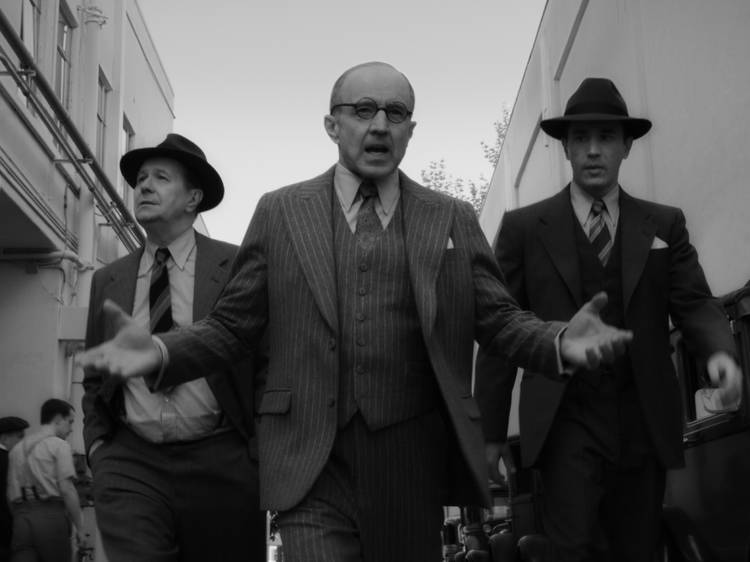 Es lo que sucede con «Mank«, una película rodada en blanco y negro, a la usanza del viejo celuloide, pero con cámaras digitales, añadiendo algo de suciedad y rayas a la imagen para darle ese toque vintage, que destaca en el catálogo de Netflix por no tener nada que ver con lo que uno esperaría encontrar en una plataforma de streaming de las llamadas palomiteras.