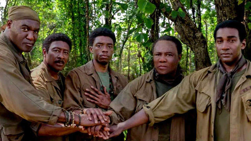 Paul (Delroy Lindo, uno de los posibles candidatos a una nominación), Otis (Clarke Peters), Eddie (Norm Lewis) y Melvin (Isiah Whitlock Jr.) vuelven a Saigón, cuarenta años después, para buscar los restos del líder de su escuadrón, Norman (memorable, Chadwick Boseman), una especie de Malcom X caído en combate, y recuperar de paso un tesoro en lingotes de oro que escondieron en la selva, decididos a repartírselo en compensación a los servicios prestados al Tío Sam.