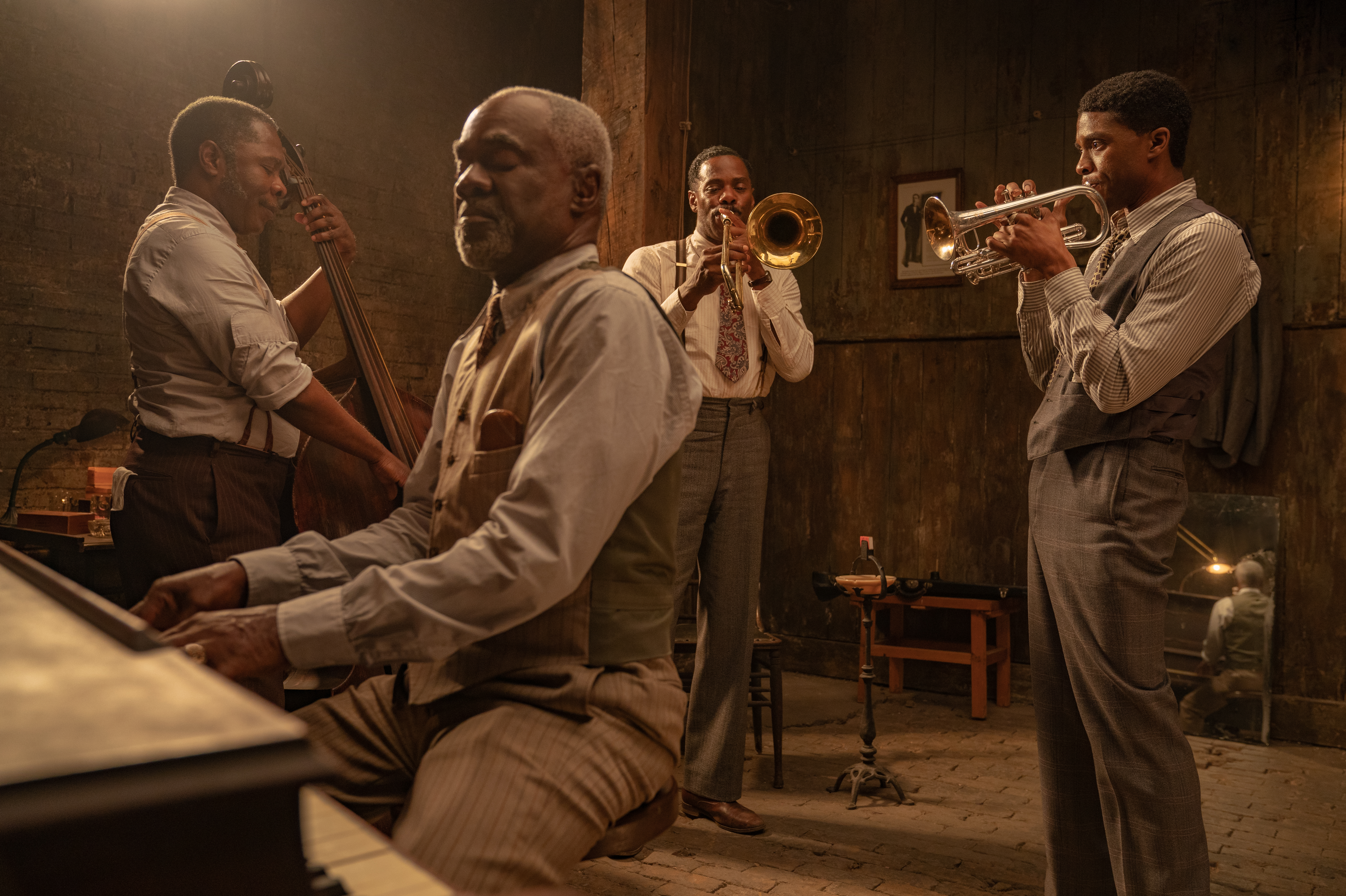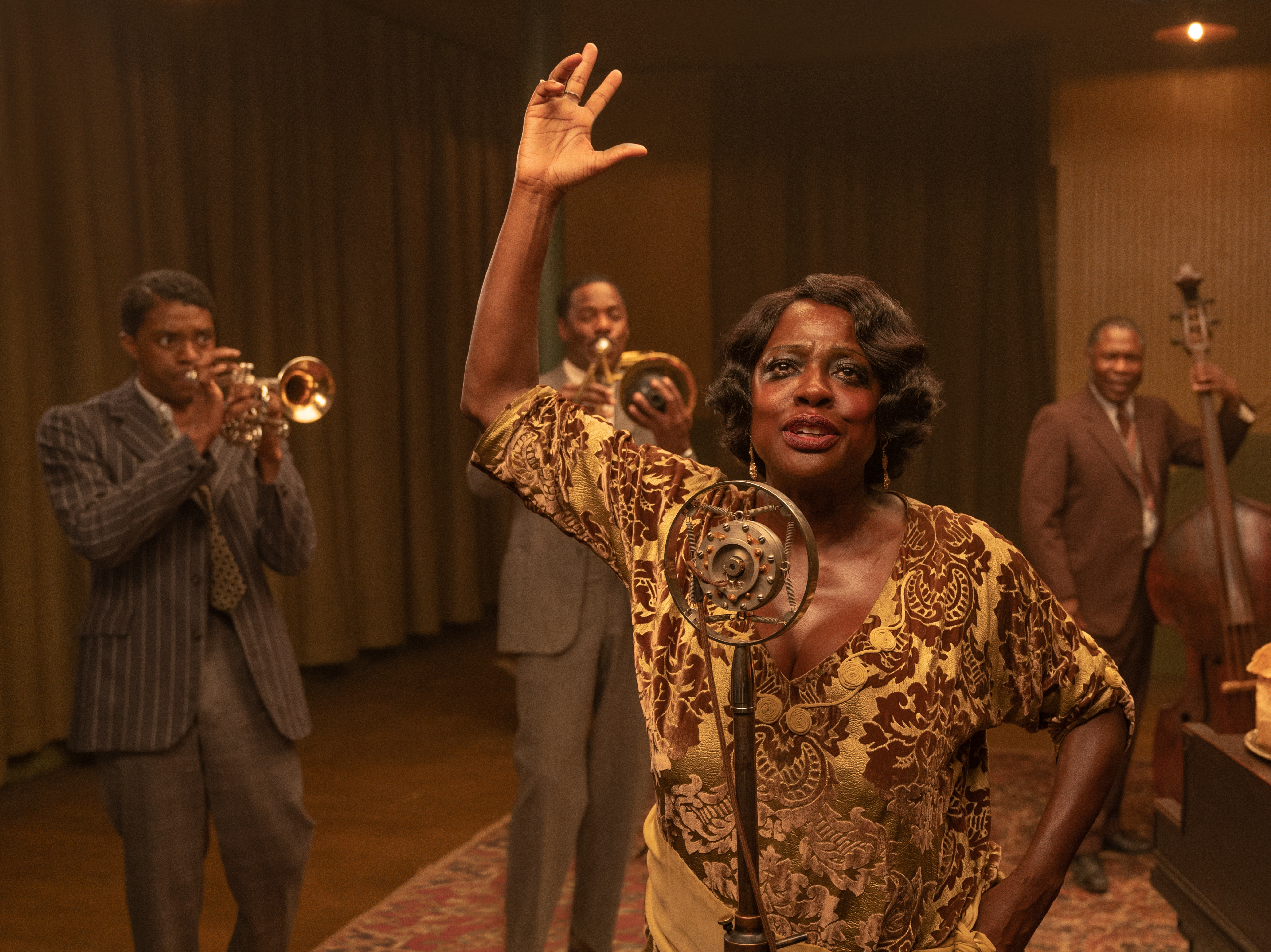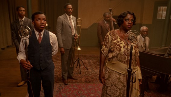 Basada en la obra teatral homónima de August Wilson, la historia está ambientada en el Chicago de finales de los años veinte y transcurre durante la tensa y sofocante sesión de grabación de un disco de Ma Rainey (poderosa e irreverente, Viola David, toda una fuerza de la naturaleza con su maquillaje languideciente, sus pechos colganderos y sus kilos de más), junto a su banda de músicos (todos negros), en la que Boseman interpreta a un trompetista atormentado por el pasado y psicológicamente marcado por el atroz asesinato de sus padres a manos del KuKluxKlan, ante sus ojos, siendo apenas un niño.