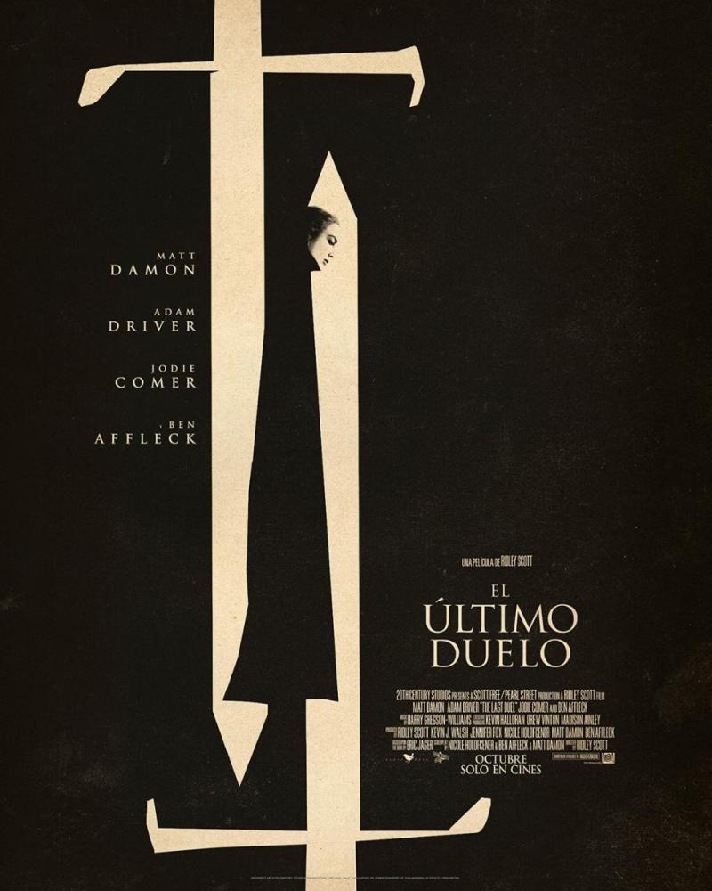 Título original: The Last Duel Año: 2021 Duración: 152 min. País: Estados Unidos Dirección: Ridley Scott Guión: Ben Affleck, Matt Damon, Nicole Holofcener. Libro: Eric Jager Música: Harry Gregson-Williams Fotografía: Dariusz Wolski Reparto: Matt Damon, Adam Driver, Jodie Comer, Ben Affleck, Harriet Walter, Nathaniel Parker, Marton Csokas, Sam Hazeldine, Michael McElhatton, Zeljko Ivanek, Alex Lawther, Clive Russell, William Houston. Productora: Coproducción Estados Unidos-Reino Unido; 20th Century Studios, Scott Free Productions, Pearl Street Films, TSG Entertainment. Distribuidora: Walt Disney Pictures Género: Drama histórico. Acción | Siglo XIV. Edad Media.