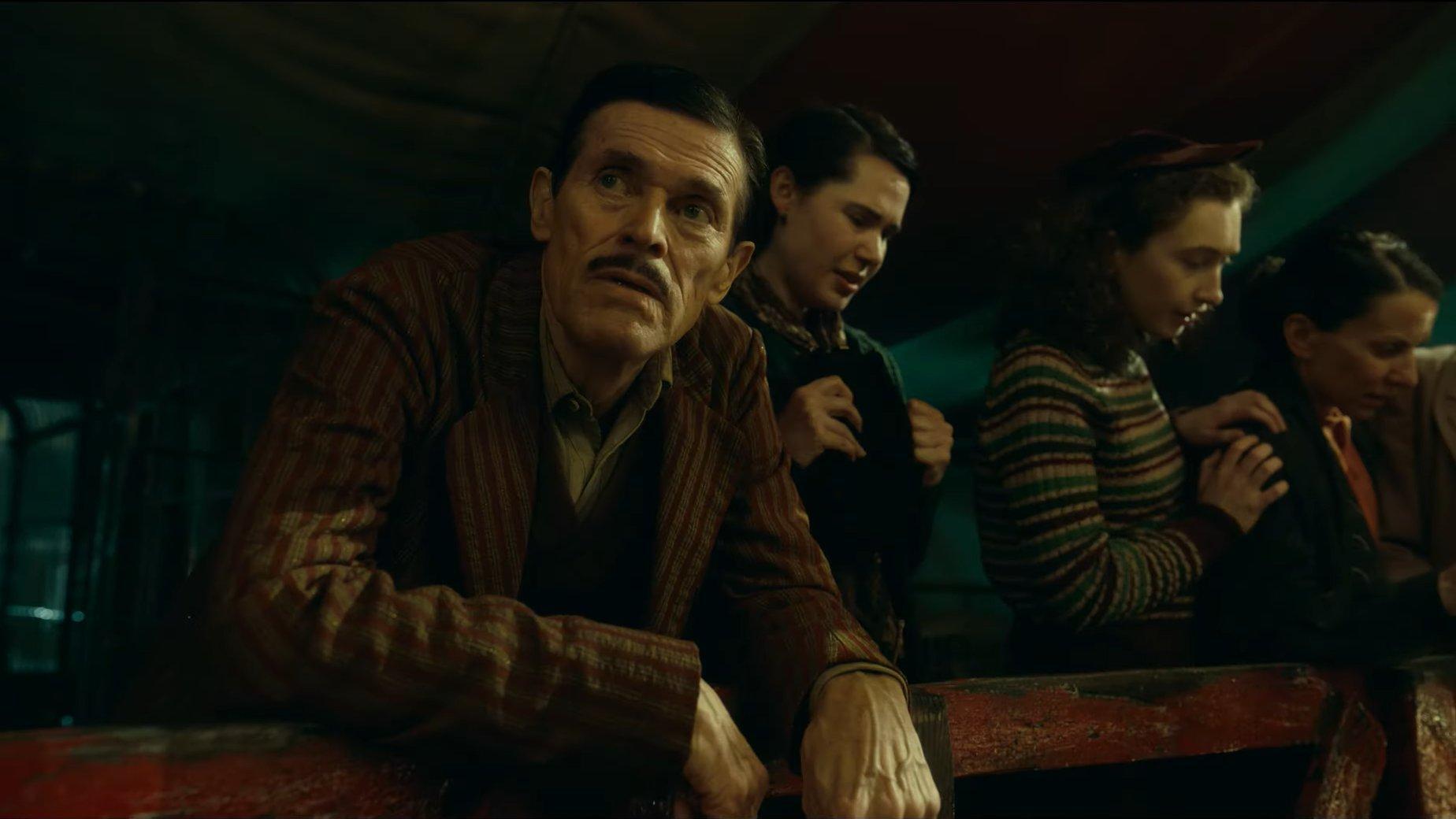 En su camino errante, nuestro hombre se topa con una feria de atracciones regentada por Clem Hoately (Willem Dafoe), un personaje cruel, siniestro y retorcido y, casi de manera accidental, acaba uniéndose a ella, trabajando primero como mozo de carga, a cambio de unos cuantos dólares y un plato de comida caliente, y muy pronto como asistente del jefe y aprendiz de adivino, tras ganarse el cariño de la vidente Zeena (Toni Collette) y de su pareja, el alcohólico Pete (David Strathairn), de quienes aprende el arte del engaño y la sugestión, lo que le abre un mundo nuevo de posibilidades a su obsesión por prosperar y convertirse en una persona de éxito.