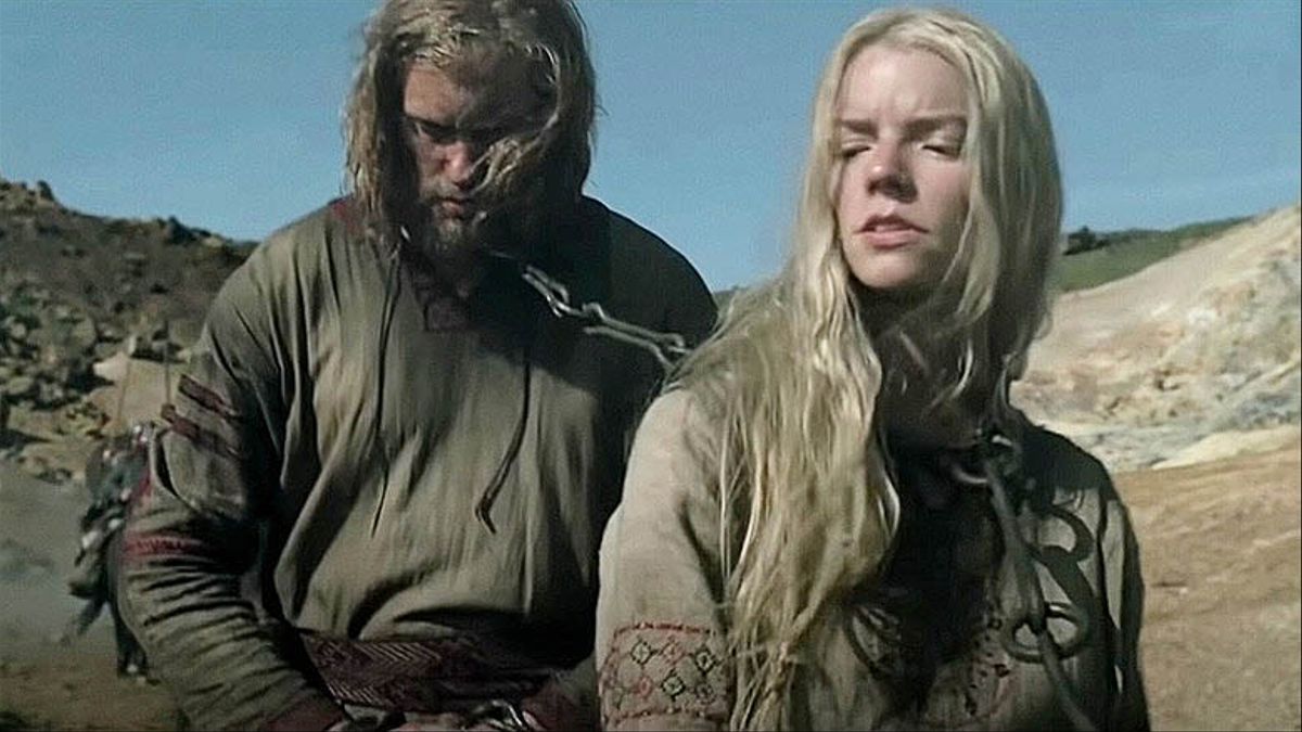 En el caso de Amleth es una misteriosa hechicera eslava de cabellos plateados, llamada Olga del Bosque de los Abedules -de nuevo Anya Taylor-Joy («Gambito de Dama«)- quien al principio lo ayuda en sus planes esperando que, a cambio, la libere de su cautiverio (ya que ambos se conocen siendo esclavos, cuando ella le dice eso de «tu fuerza consigue romper los huesos de los hombres, pero yo tengo el ingenio para romper sus mentes») y, al final, casi lo hace desistir de su propósito de venganza ablandando su malherido corazón entre frases místicas e incomprensibles, y proponiéndole escapar juntos. Quieren los dioses desde el principio que sea una mujer quien tenga la llave de su salvación sujetándolo con el hilo eterno del amor, aunque tan noble y desconocido sentimiento para quien confiesa no haberse sentido nunca antes tan cerca de un ser humano, no lo exima de completar su sino, antes de galopar a lomos del caballo de la Valkiria que lo conduce hacia el Valhalla.