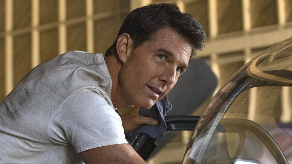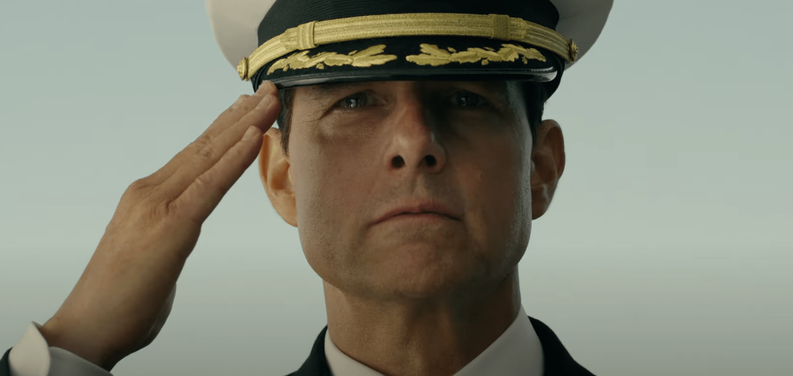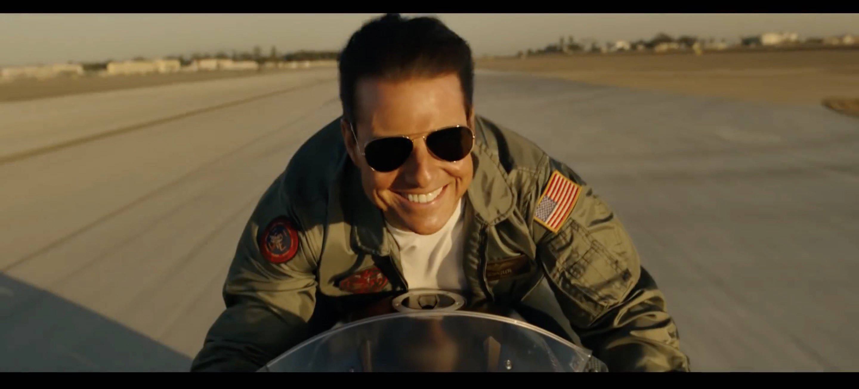 Cruise empieza volando prototipos de aviones supersónicos ultraveloces, para ponerse después a los mandos de un F-18 y terminar pilotando un F-14 Tomcat, el caza que pilotaba en la película original. A Cannes, en cambio, llegó pilotando él mismo un helicóptero. Una entrada triunfal para presentar su película por todo lo alto, con una Palma de Oro Honorífica en mano y autoerigiéndose como el gran valedor de las salas de cine frente a las plataformas de streaming.