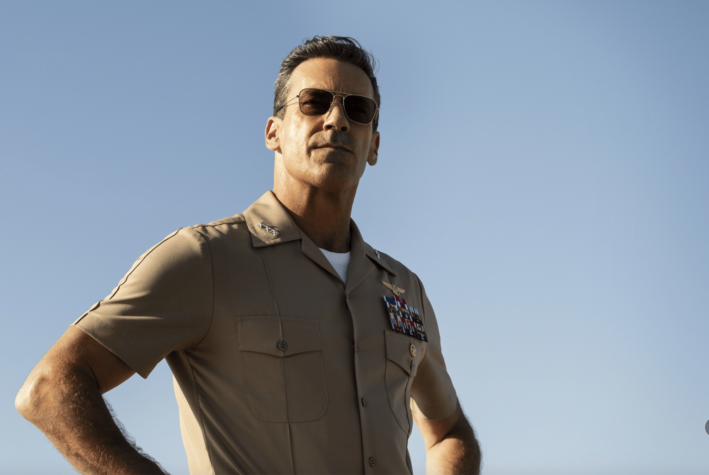 De ahí que el papel protagónico femenino, además del de la teniente Phoenix que interpreta Mónica Barbaro (imagino que introducido por aquello de que han pasado 36 años y toca ya visibilizar que también hay mujeres entre los pilotos de élite de la armada estadounidense, aunque el gesto no disipe la bruma testosterónica que impregna toda la peli), haya recaído en la actriz Jennifer Connelly, de quien se nos cuenta que es un viejo amor de juventud (Penny Benjamin), pese a que nadie recuerda que se la mencionara en la película original, quien no tiene mayor relevancia ni misión en esta nueva entrega que la de querer incondicionalmente a su protagonista absoluto, el veterano piloto Pete «Maverick» Mitchell (Cruise), quien vuelve a surcar los cielos a bordo de los aviones de combate más veloces y sofisticados del mundo, enfundado en su chupa de cuero con parches de aviador a sus 60 años, con las mismas Ray-Ban Aviator y conduciendo la Kawasaki Ninja de gran cilindrada que pilotaba en la cinta de 1986, a gran velocidad y, por cierto, siempre sin casco.