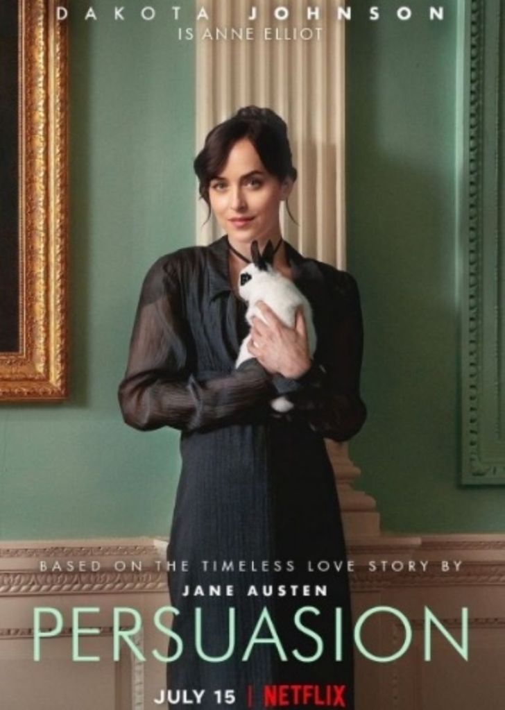 La Anne Elliot (Dakota Johnson) original es una joven de su tiempo. De apariencia frágil aunque claramente más inteligente, sensible, atractiva y sagaz de lo que sus parientes suponen. Ninguneada por su padre, Sir Walter Elliot (un Richard E. Grant en plan parodia pura y dura), un viudo de vida dispendiosa que ha malgastado la fortuna familiar, viéndose obligado a mudarse de su mansión de Somerset a una casa (un poco) más modesta en Bath, y su hermana mayor Elizabeth (Yolanda Kettle); Anne va a visitar a su hermana menor, la hipocondríaca Mary Musgrove (Mia McKenna-Bruce), casada con Charles Musgrove (Ben Bailey), con quien tiene dos hijos pequeños a los que no les presta la menor atención.