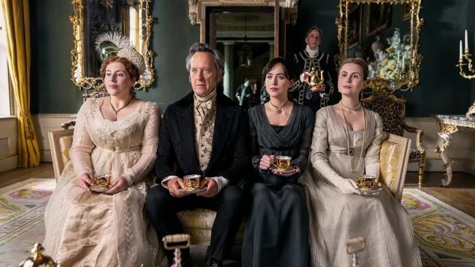 Esa es la (en apariencia) sencilla historia que cuenta la novela de Austen y que la adaptación de Netflix utiliza como punto de partida para construir un argumento que adolece de la profundidad y la retorcida y fina ironía que caracterizan su obra narrativa, reduciéndola a una especie de sátira social liviana y redundante, recargada de ideas-fuerza extraídas de un feminismo pasivo-agresivo en clave muy actual, en un absurdo empeño por dejar claro que la inmortal escritora británica era una mujer adelantada a su época, algo que salta a la vista con solo echar un vistazo a su producción literaria.