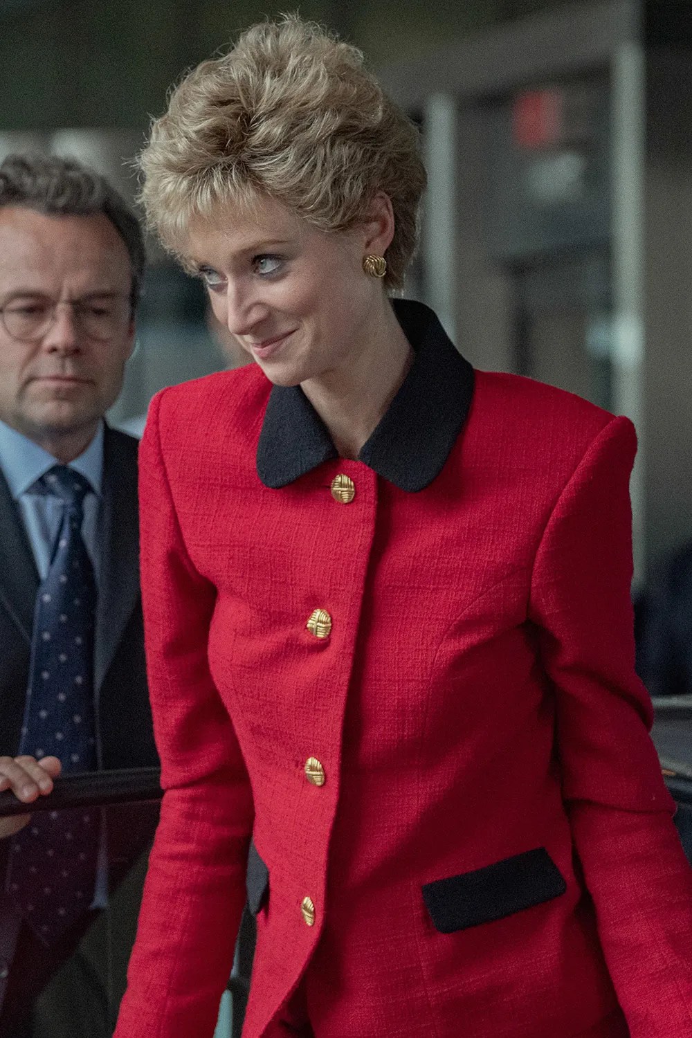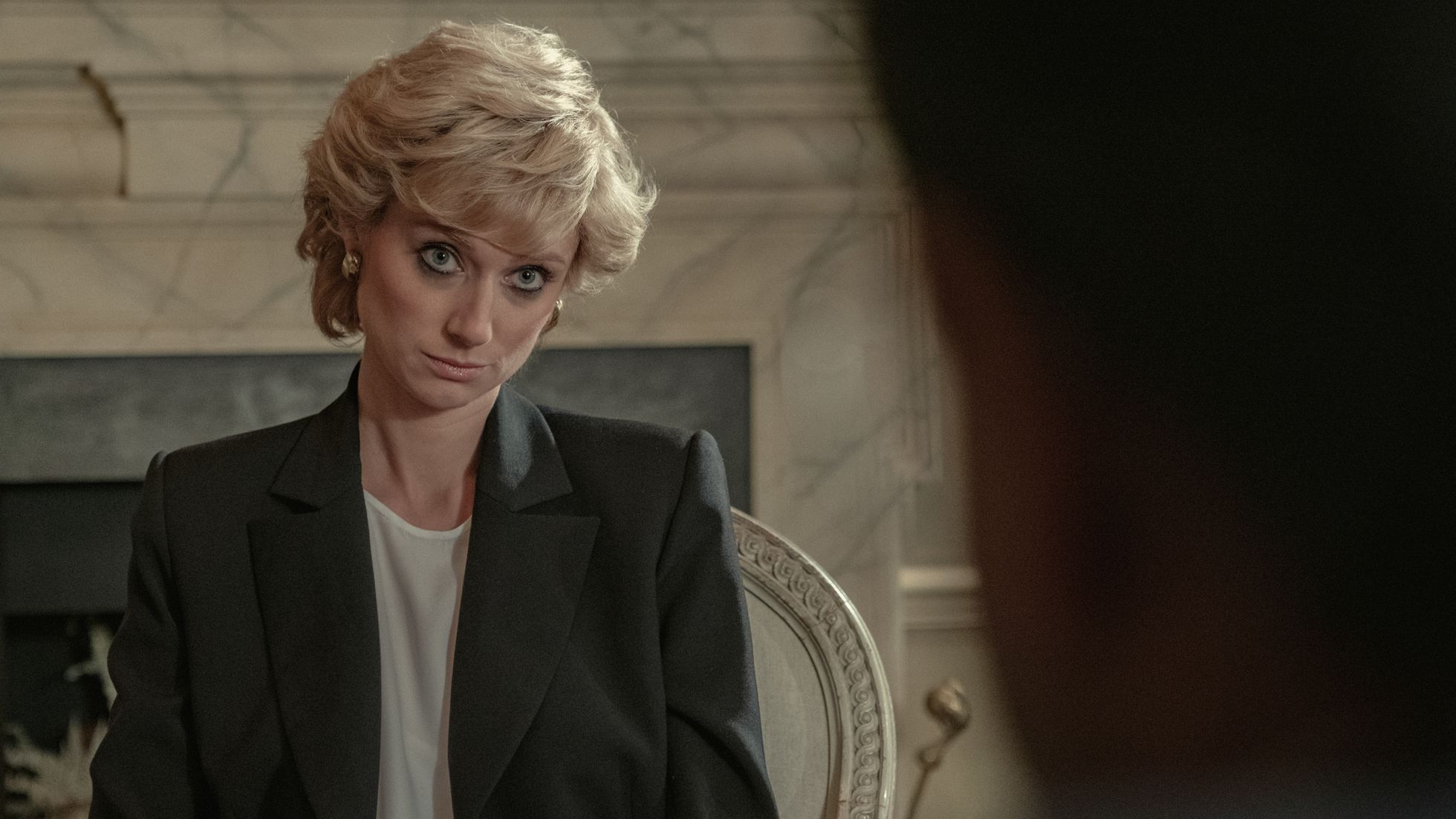 No ocurre lo mismo con Elizabeth Debicki, cuyo notable parecido físico, gestual y corporal con Ladi Di resulta sorprendente, haciendo un calco perfecto de la princesa Diana, principalmente de su forma de mirar, una peculiaridad de este personaje a quien se nos presenta como una mujer desequilibrada que tiene un único conflicto: su matrimonio malogrado, lo que la lleva a victimizarse en exceso, haciendo partícipe de su desgracia a todo el que se le acerca y, muy especialmente a su hijo mayor, Guillermo, a quien por momentos llega a abrumar con sus confidencias.