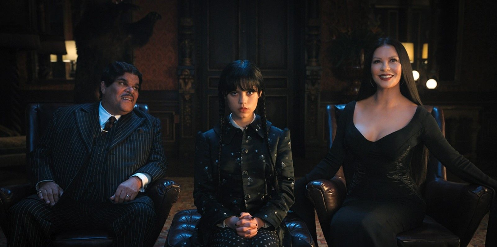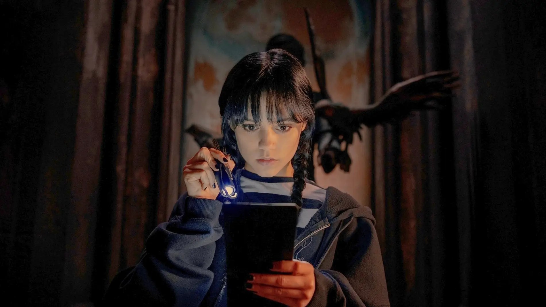 A semejanza del Howards End de Harry Potter, Burton, Millar y Gough crean Nevermore (Nunca Más), bautizado así por el verso de Poe. Un internado para aprendices de sirenas, vampiros, licántropos, medusas y hydes (monstruos de ojos saltones, garras afiladas y apetito insaciable al servicio de quien libere su agresividad contenida) o videntes novatas, como la hija mayor de los Addams, en el que las paredes se abren con un chasquido de dedos que suena familiar para descubrirnos el acceso a hermandades secretas y misterios añejos.