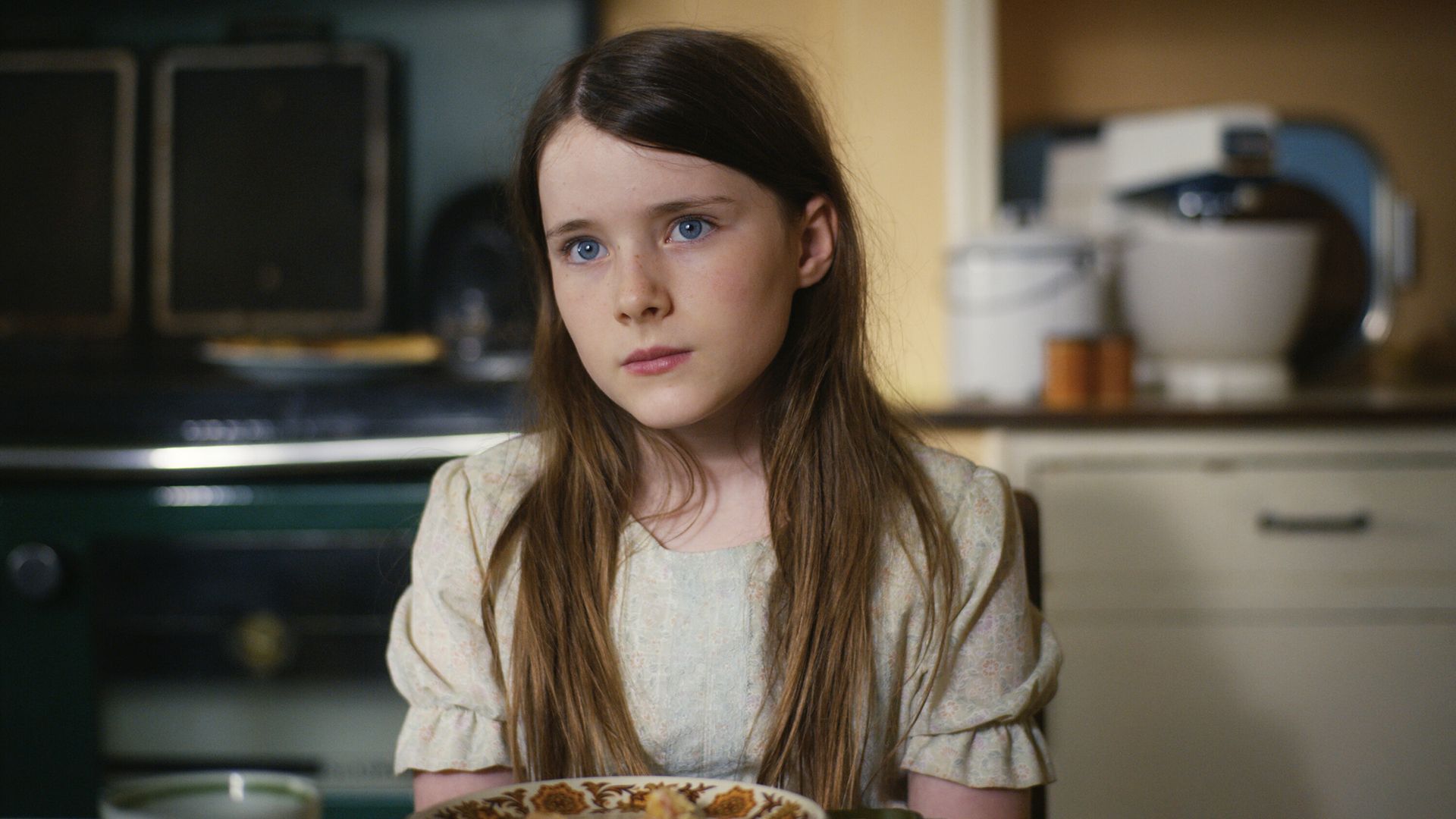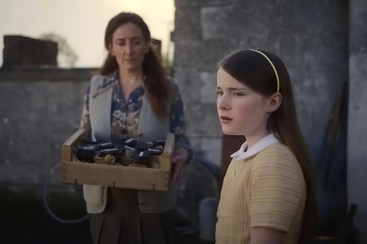 El siguiente aspecto a destacar es su reposado tempo narrativo que, sin embargo, dista mucho de las dos horas y media a las que últimamente nos tienen acostumbrados ciertos directores para desarrollar su argumento. 95 minutos le bastan a Bairéad para decir lo que quiere contarnos, en parte gracias a su proverbial sentido del lenguaje cinematográfico donde todo comunica que se percibe, entre otras cosas, en la manera en la que el diseño de fotografía de Kate McCullough juega con la temperatura del color, con un predominio de los tonos grises y los colores lúgubres para retratar la frialdad, la suciedad, la miseria e infelicidad que reinan en casa de los Cháit, en contraposición con los acogedores ocres o los intensos verdes saturados de la soleada campiña irlandesa donde por fin la pequeña Càitie ha conocido el afecto y la protección.