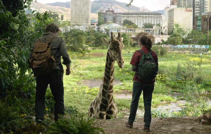 Los juegos de palabras del libro de chistes que ella le dio y que Ellie atesora, las lecciones de béisbol, las bromas con las fotos de la revista porno gay de Bill y la escena con las jirafas, otro momento sublime y de gran delicadeza, crean un universo particular compartido únicamente por padre e hija, que es lo que Joel y Ellie al final terminan siendo.
