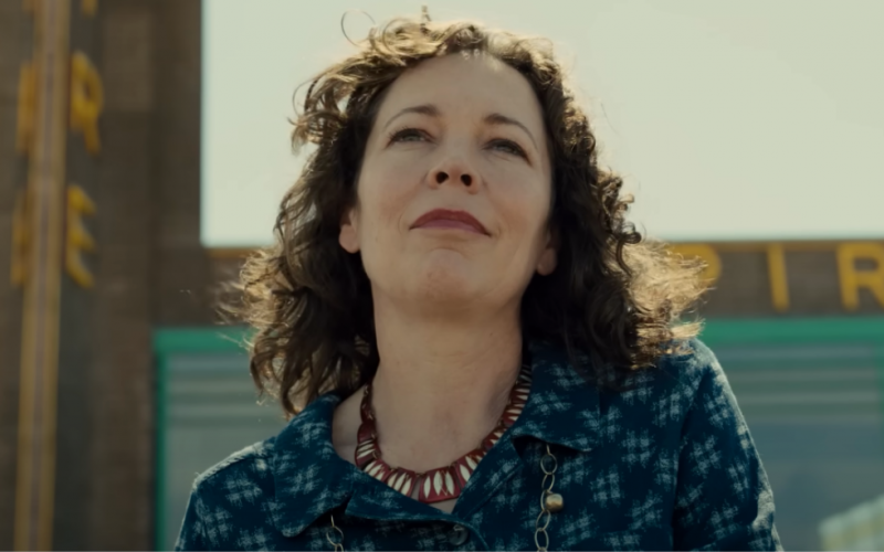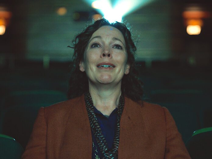 El cineasta británico asume por primera vez la autoría del guion en solitario y se inspira en su propia madre para construir el personaje central, Hilary Small (Olivia Colman, que recuerda cada vez más a Bette Davis, llevando sus emociones a ebullición, con el rímel corrido y la dignidad anulada), una mujer de mediana edad que sufre un trastorno bipolar, lo que le ha hecho perder el control en alguna ocasión, teniendo que ser ingresada por los servicios sociales en un psiquiátrico. Cuando la conocemos, Hilary está ya de vuelta en su trabajo y se mantiene serena, aunque emocionalmente vulnerable, gracias a la supervisión médica y al preceptivo tratamiento de Litio que la deja algo anestesiada pero que no le impide realizar cabalmente sus funciones como encargada del que, en tiempos, fuera el mejor cine de estreno del suroeste de Inglaterra.