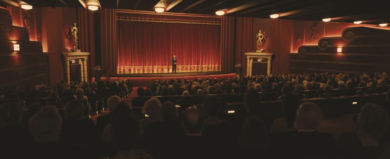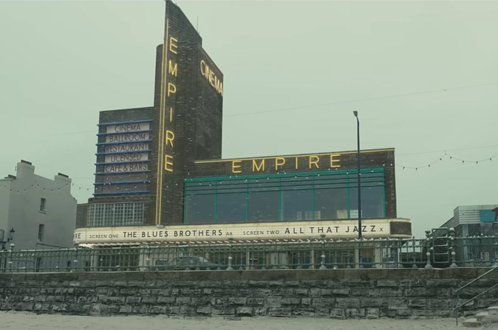Regentado por el depravado John Elis (Colin Firth) un jefe que abusa de su superioridad con fines sexuales, el “Empire Cinema” es un majestuoso edificio art decó, un espacio esplendoroso con impresionantes vistas a la bahía de Margate, en la costa de Kent, que permanece abierto al público a duras penas, pese a tener varias salas de proyección cerradas y un inmenso salón piano-bar medio en ruinas. Una joya de la arquitectura vintage, que gracias a la gran dirección de arte y la fotografía de Roger Deakins, se transforma en un lugar de ensueño y en uno de los mayores aciertos de la película (la escena de Nochevieja en la azotea, mientras estallan los fuegos artificiales, es de una cuidada belleza).