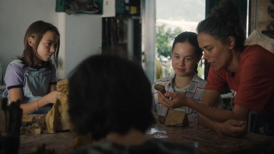 La familia no atraviesa por su mejor momento económico, por lo que Ane decide cruzar la muga en tren, para pasar el verano con sus tres hijos en Hegoalde, concretamente en Llodio (localidad de donde es natural la directora de la película), en casa de su madre Lita (Itziar Lazkano) y de su tía Lourdes (la veterana Ane Gabarain, a la que hemos visto en la serie “Patria”), quien se dedica a la apicultura para la producción de miel y de cera, y para su aplicación en terapias medicinales alternativas basadas en el poder curativo de la picadura de abeja. Su intención es utilizar el taller de su padre, ya fallecido y también escultor como ella, para crear la pieza que le exigen como requisito para obtener la plaza de profesora a la que se ha presentado. Pero nada saldrá como esperaba.