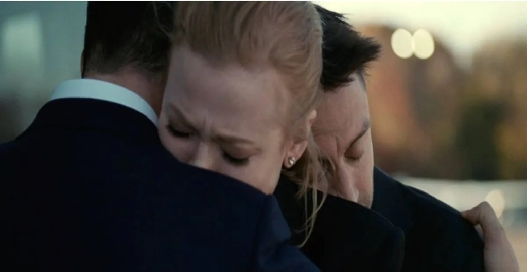El cierre de «Succession» es tan brutal como inesperado. Por primera vez vemos a un Kendall genuinamente feliz, al saberse a punto de alcanzar lo único que da sentido a su vida. En la cocina de su madre, los tres hermanos se liberan de la carga de la sucesión entronizándolo por unanimidad y, en ese momento, vuelven a vincularse desde un sentimiento fraternal. Sin embargo, la fraternidad dura poco porque, al llegar a las oficinas de WayStar, (con paredes de cristal traslúcido que todo lo muestran), Shiv advierte que Kendall, al poner los pies sobre el escritorio de su padre, se transforma en él y, haciendo volar su acuerdo por los aires, decide clavarle a su hermano mayor una daga en el corazón, negándole su apoyo ante el Consejo para impedir la fusión. Roman tampoco puede hacer las paces con la humillación que representa para él no ser el elegido. Lo que desata una violencia visceral y descarnada que los define y los deslegitima a la vista de todos. Ken pierde el control, empuja a su hermana embarazada y quiere sacarle los ojos a Roman, mientras este le lanza toda clase de improperios.