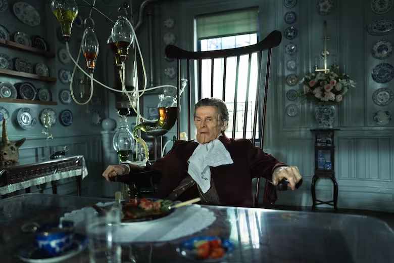 Criada en cautividad por el Dr. Godwin Baxter (Willen Dafoe), un excéntrico cirujano, no menos monstruoso que su criatura, a causa de las costuras que le desfiguran el rostro, ocasionadas por los crueles experimentos que su propio padre (también hombre de ciencia) llevó a cabo con él desde que era apenas un niño, la vida de Bella, quien guarda un gran parecido físico con la mujer a la que hemos visto suicidarse, transcurre oculta entre las cuatro paredes del caserón de Godwin, a quien cariñosamente llama “God” (Señor, Dios, Padre y Creador). Un palacete por el que deambulan gallinas con cabeza de cerdo y gansos con cuerpo de perro.