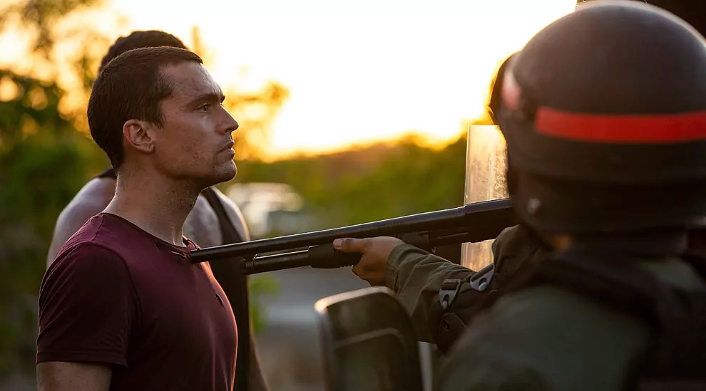 “Simón” pretende hablarnos de ello contándonos la historia de un estudiante de ingeniería (interpretado con desgarro por Christian McGaffney) que, no por casualidad, lleva el mismo nombre que el Libertador de las Américas, quien se convierte en uno de los líderes del movimiento estudiantil venezolano durante las revueltas que tuvieron lugar en Caracas, entre 2014 y 2017. Un periodo de gran convulsión social, preludio de una década de penurias y exilio, en el que se producían casi a diario “guarimbas”, manifestaciones callejeras, con barricadas y cortes de carretera, que acababan en violentos enfrentamientos entre jóvenes estudiantes armados con palos y piedras, dispuestos a desafiar al ejército y la Guardia Nacional bolivarianos, para protestar en contra de las políticas del gobierno de Nicolás Maduro, que tenían sumido al país en la más absoluta miseria. Una crisis humanitaria sin precedentes en la historia del país sudamericano, cuyos habitantes tuvieron que aprender a lidiar con cortes de agua y de luz, y el desabastecimiento de gasolina, medicamentos y alimentos de la cesta básica. Así como con la restricción de las libertades públicas, agonizantes bajo un régimen que cerraba medios de comunicación y limitaba el derecho a la libre expresión y oposición políticas.