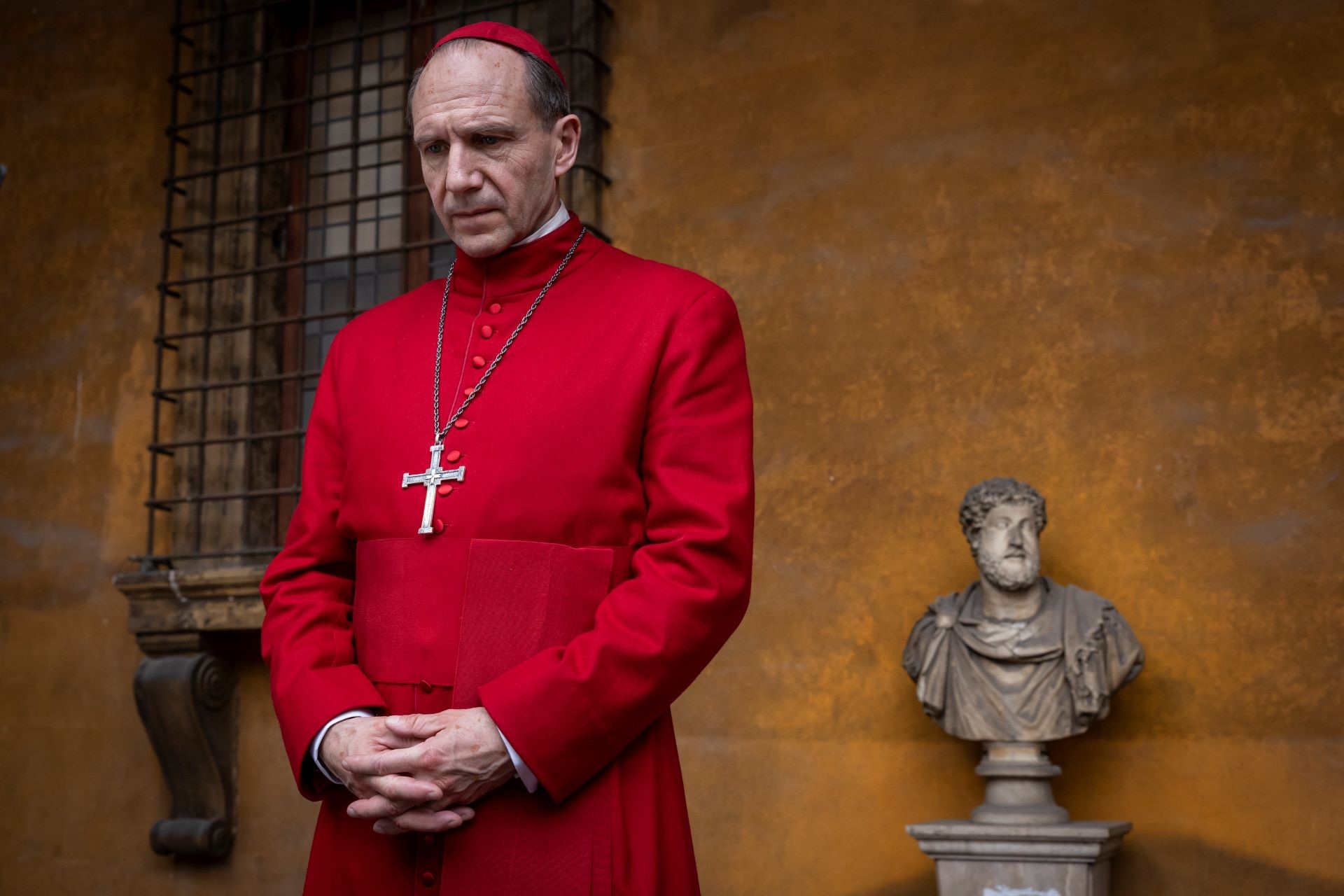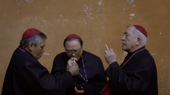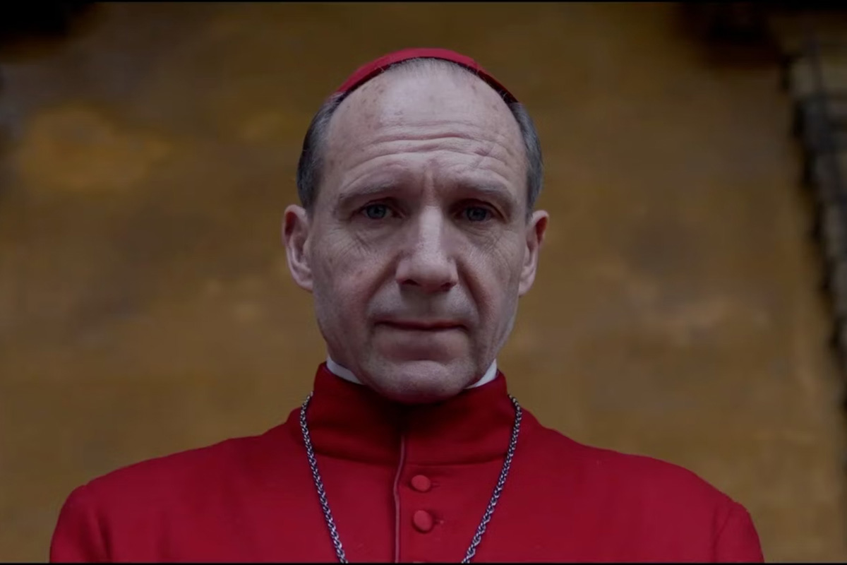 El cardenal Lawrence (Ralph Fiennes) camina presuroso por las calles de Roma, llega al Vaticano y entra en un ascensor. Se quita el solideo y lo aprieta con fuerza entre sus manos. Su gesto contrariado denota la preocupación que le invade. Al abrirse las puertas, atraviesa un largo y desnudo pasillo, cuya lánguida iluminación podría ser la de un hospital, y, al fin, llega a su destino: la llamativamente humilde habitación de un Papa que acaba de fallecer. Otros tres cardenales, que previamente han manipulado el cadáver cruzándole los brazos sobre el pecho, rodean su cama. Tras unirse al grupo y rezar, de rodillas, unas oraciones en latín, uno de ellos coge la mano del Sumo Pontífice e intenta quitarle el anillo del pescador, pero, debido al agarrotamiento de los dedos, se ve obligado a ejercer más fuerza de la que creía necesaria. El crujir de huesos es amplificado buscando que el sonido resulte desagradable, violento, atronador. El rostro de Lawrence, que lo observa todo con perpleja incredulidad, refleja su temor a terminar igual que su apreciado Santo Padre, rodeado en su lecho de muerte por una jauría de lobos que llevan tiempo esperando ocupar su lugar. El Papa ha muerto, pero lo importante no es la desaparición del hombre —cuyo nombre nunca llega a pronunciarse—sino el final de su reinado y la incertidumbre de quién será el elegido su sucesor, para regir en adelante los destinos de la Iglesia de Pedro.