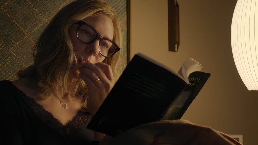 Presumiendo de una complejidad que en realidad no es tal, la serie plantea un juego entre la realidad y la ficción contando tres historias de forma paralela, que suceden en tiempos distintos. Conocemos a Blanchett durante la ceremonia de entrega de un premio, como la respetada documentalista y periodista de investigación Catherine Ravenscroft, casada con Robert (Sacha Baron Cohen), un hombre de negocios que maneja grandes inversiones en fundaciones filantrópicas, con el que tiene un hijo veinteañero, Nicholas (Kodi Smit-McPhee), un tanto taciturno y torturado. E inmediatamente nos acercamos a la desventurada existencia de Stephen Brigstocke (Kevin Kline), un profesor universitario a punto de jubilarse, cuya esposa Nancy (Lesley Manville) ha muerto de cáncer hace algunos años. Revisando las cosas de su amadísima mujer de la que siempre fue dependiente y subordinado, Stephen encuentra el manuscrito de una novela y unas fotos de alto contenido erótico en las que aparece una joven mujer. Es Catherine, unos 20 años atrás (interpretada por Leila George), posando desnuda y aparentemente muy excitada en una sesión de fotos que transcurre en la cama de un cuarto de hotel.