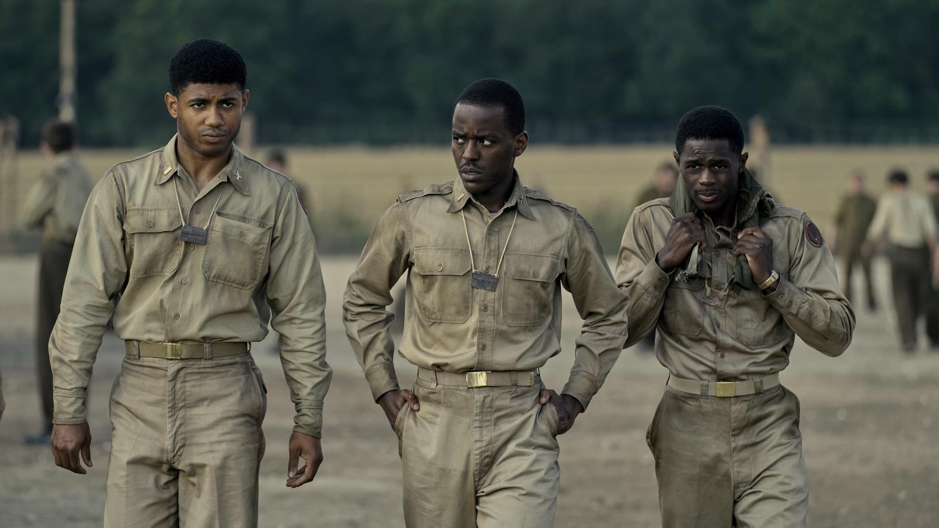 Majestuosa secuela de la maravillosa “Hermanos de sangre”, que reconstruía las vivencias de la compañía Easy, un batallón de soldados norteamericanos apostados junto al ejército aliado en terrero europeo, “Los amos del aire” es la segunda entrega de una trilogía que se completa con “The Pacific” que retrataba la guerra desde la perspectiva de los soldados aliados apostados en Asia, y tiene todo lo que podrías esperar de una serie producida por Steven Spielberg, Tom Hanks y Gary Goetzman (‘Licorice Pizza‘ o ‘Greyhound‘). Está magníficamente interpretada por un escogido elenco de jóvenes estrellas en ciernes (Austin Butler, Callum Turner, Anthony Boyle, Nate Mann, Rafferty Law, Barry Keoghan, Josiah Cross, Branden Cook y Ncuti Gatwa), filmada con un talento descomunal y montada con el tacto meticuloso que un artesano pondría programar un reloj suizo. Pocas veces se ha visto en la pequeña pantalla tal ambición visual, comandada por Cary Joji Fukunaga (True Detective, Sin tiempo para morir), quien se encarga de dirigir los cuatro primeros episodios en los que se establece el tono y el ritmo de la narración. Un realizador que convierte las batallas aéreas en auténticas obras de arte.