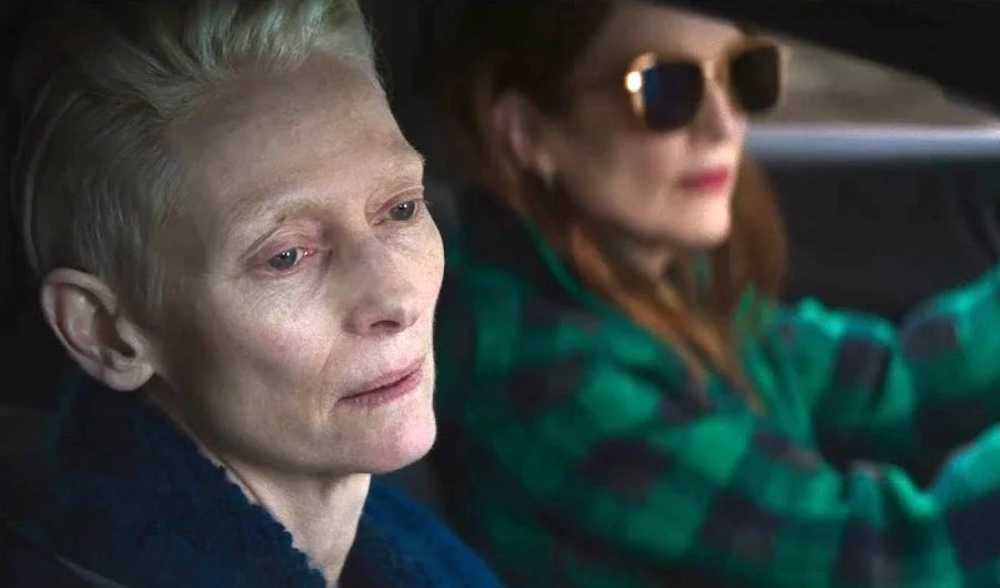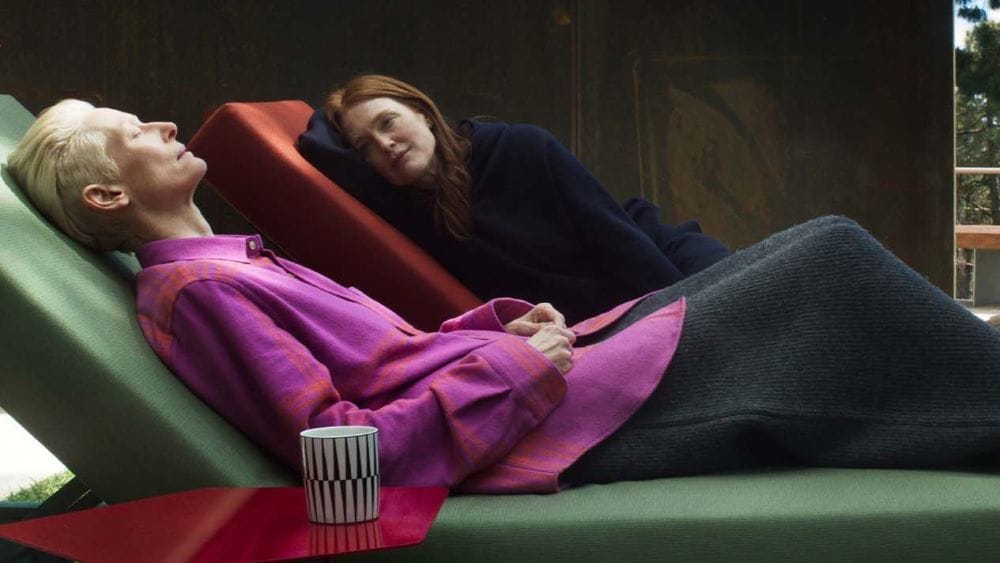 Lo tiene todo pensado. Ha comprado una pastilla letal en la deep web para llevar a cabo su propósito y anímicamente ha asumido que lo mejor será abandonar este mundo, sin encomendarse a Dios ni al resto de la humanidad. Ni siquiera a la hija que tuvo siendo muy joven, con la que guarda un gran parecido físico (ambos personajes están interpretados por la andrógina Tilda Swinton) aunque no tiene apenas relación ni tiene intención de recuperarla, pese a que reconoce que el único miedo que siente es a estar sola cuando se decida a dar el paso de dejar este mundo. Y ahí es donde entra Ingrid, a quien el pide que la acompañe en su último viaje, como dos amigas que se van de vacaciones y que, llegado el momento, le regale la tranquilidad de saber que alguien estará en la habitación de al lado, cuando de el paso de quitarse la vida.