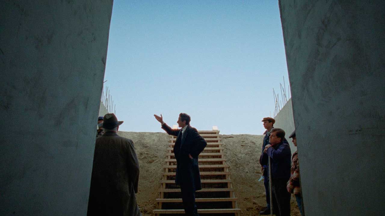 Mención aparte merece la ambientación de esas primeras secuencias, el escaparate de la tienda de muebles, las monumentales obras del desarrollismo americano, la mina de carbón en la que se acaba empleando de peón quien en otra vida había sido un brillante y reputado arquitecto y la funcional y moderna biblioteca que diseña por encargo.
