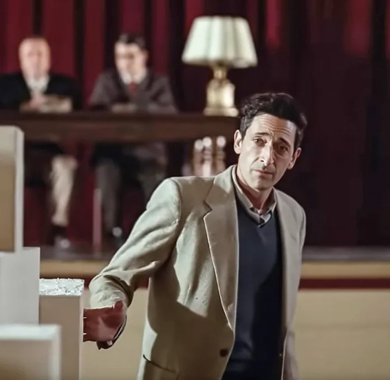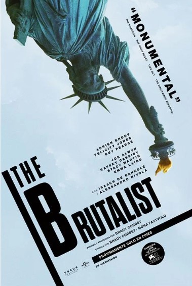 Filmada en VistaVision (el formato de 35 mm patentado por la Paramount) y escrita junto a la actriz, guionista y directora noruega Mona Fastvold, su pareja y también coguionista de sus dos anteriores películas, el que es su tercer trabajo da testimonio del malogrado sueño americano de un no menos malogrado arquitecto judío de origen húngaro, Lászlo Tóth, superviviente del holocausto quien, al finalizar la II Guerra Mundial, consigue llegar a Nueva York, puerta de entrada a los Estados Unidos de América. Lo sabemos porque la primera imagen que vemos cuando László emerge de la abarrotada bodega del barco de refugiados que lo lleva hasta allí es la de la Estatua de la Libertad. Solo que está boca abajo, lo que presagia un cambio radical de perspectiva respecto de la iconografía nacional establecida.