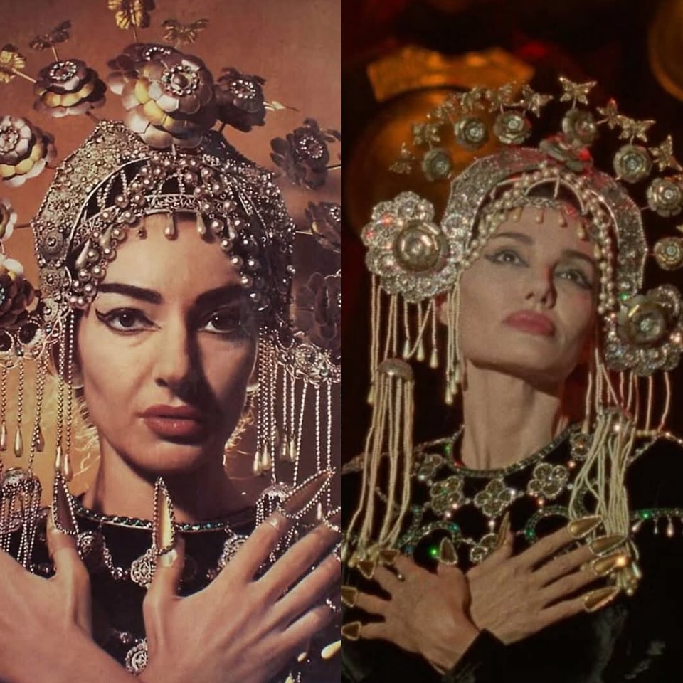 Cuando se encontraron, María recién se había separado de su amante, el magnate naviero Aristóteles Onassis (Haluk Bilginer), quien la abandonó para casarse con la viuda de JFK, y pasaba por una de sus peores crisis de inseguridad personal y profesional, por lo que la película de Pasolini fue para ella una especie de salvavidas que la ayudó a relanzar su popularidad. Aunque nada pudo evitar que, siendo, como era, un ser emocionalmente inestable, frágil y susceptible (como suelen serlo muchas de las grandes figuras del bel canto a las que su ego precede) se precipitara al autodestructivo abismo de la desesperación, el despecho y la melancolía al sentirse despreciada por quien fuera su gran amor y también su perdición.