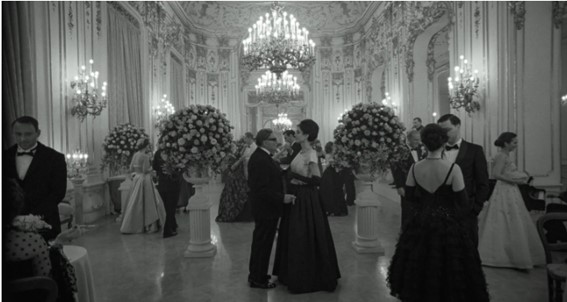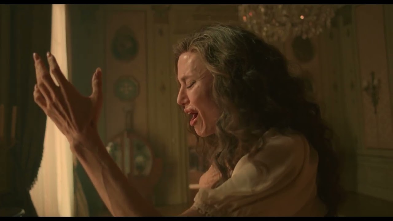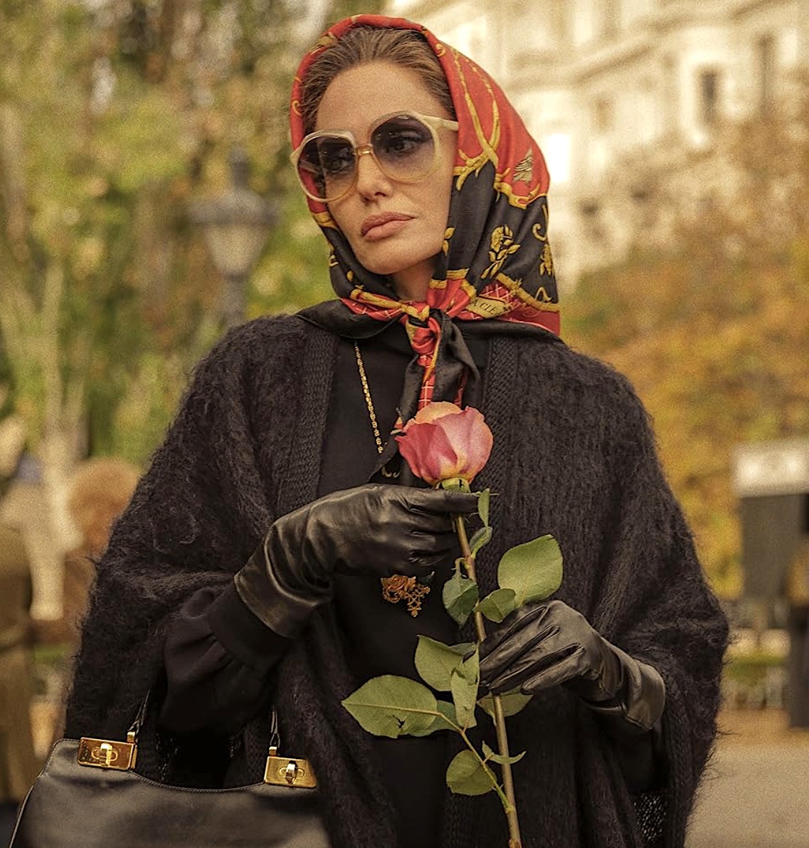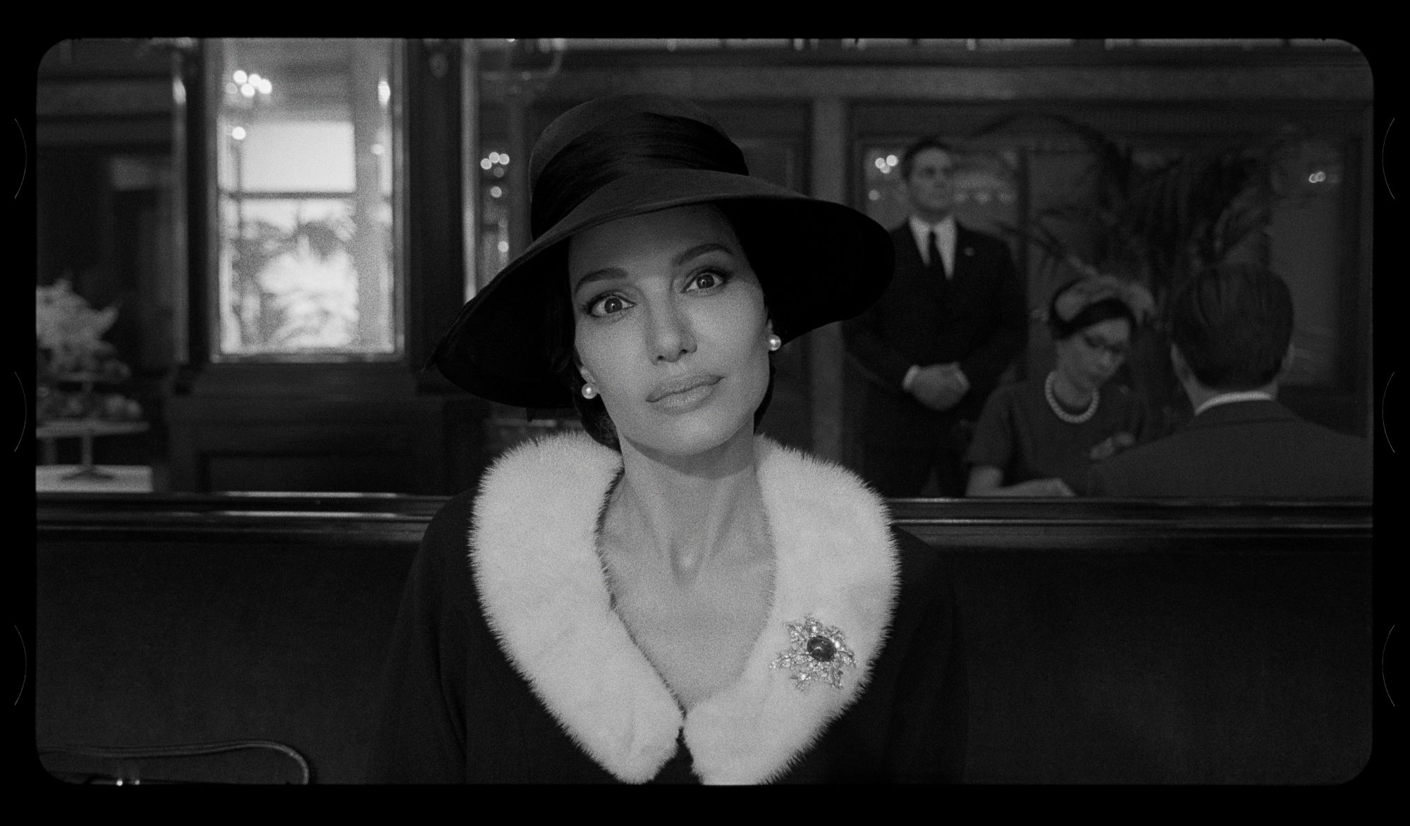 La cámara la sigue mientras camina vestida de incógnito hasta la Torre Eiffel, por las Tullerías, por el Puente Alexandre III y por los alrededores de la Plaza Vendôme arrastrando su melancolía. Cuando necesita cariño, se va a uno de esos cafés en los que los camareros la idolatran, frente al Teatro Du Châtelet, donde recuerda la primera vez que conoció a Onassis. Y cuando empieza a soñar despierta con ese pasado lustroso, vemos en blanco y negro a Jolie cantando como La Callas en La Scala de Milán o en el Royal Opera House de Covent Garden, escenas que se rodaron en realidad en el Apollo Theatre en Pyrgos, Grecia.