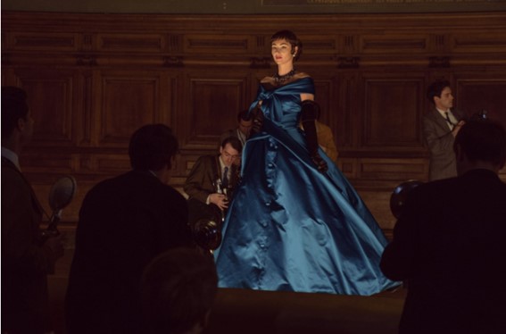 En una escena que recuerda mucho el inicio del piloto de «The Newsroom«, una joven llega hasta el micrófono y formula su pregunta: ¿es cierto que mientras trabajaba para Lucien Lelong (John Malkovich) durante la guerra, Dior ayudó a crear vestidos para las esposas y novias de los nazis que ocupaban París, mientras que Coco Chanel cerró su boutique por lealtad patriótica?