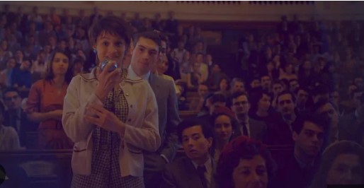 La cámara casi acaricia los vestidos de satén blanco, seda azul y tul limón. Las faldas amplias, largas y ahuecadas con enaguas, los talles ceñidos que aportan estilo a la silueta marcando el regreso de la corsetería, los hombros estrechos y los escotes amplios representan una nueva feminidad…. La audiencia enloquece.
