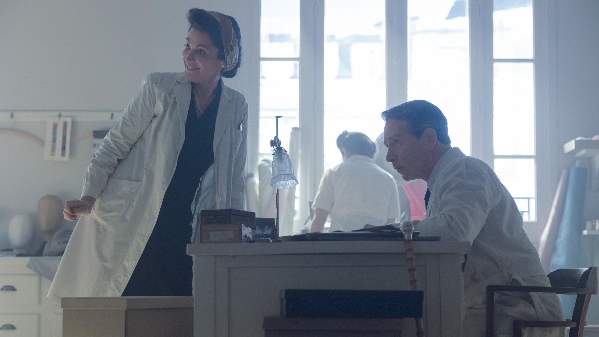 Al abrir su propia casa de costura, con la financiación del “rey del algodón”, Marcel Boussac (Patrick Albenque), no pretendía cambiar la historia, simplemente quería crear hermosos vestidos para que los lucieran las mujeres. “La elegancia requiere intimidad”, dice expresando su frustración al contemplar el palaciego taller que sus nuevos patrocinadores corporativos le están presionando a ocupar, porque no cree que la belleza pueda surgir de entornos intimidantes. Sin embargo, al crear los diseños más deslumbrantes, hacer historia era una consecuencia inevitable. Y vaya si la hizo.