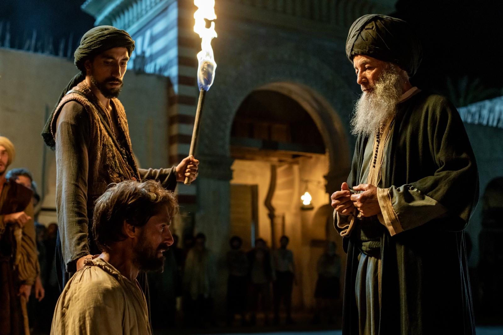Cervantes, fabula Amenábar, procede de una familia sin un real y sus intentos de hacerse caballero de armas se saldaron con un brazo inútil, lo que le valió una dispensa real. Durante su cautiverio en Argel descubrirá su poder para engatusar con la magia de la palabra cuando, tras un primer intento frustrado de fuga, consigue salvar su vida y la de sus compañeros contando historias que fascinan al Bajá o gobernador (Alessandro Borghi), jefe supremo de la prisión. Un personaje temible y hedonista, veneciano convertido al islam por quienes fueron sus propios captores, los turcos, quien vigila a los prisioneros escondido tras la celosía de su ventana en lo alto de su palacio, llegando a desarrollar una fuerte e indisimulada atracción por el joven contador de cuentos que va más allá del interés literario.