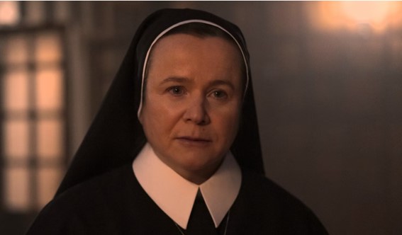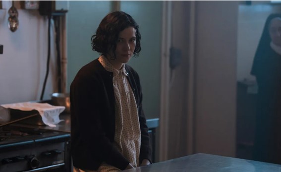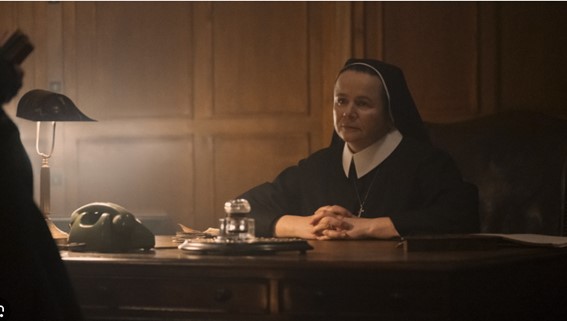 La ruta de reparto lo lleva regularmente hasta el cobertizo de un asilo cercano, el Convento del Buen Pastor, regentado por la congregación de la Hermana Mary, una influyente figura local (interpretada con aterradora eficacia por la actriz Emily Watson, con su voz amable y su mirada gélida, símbolo de la hipocresía institucionalizada).