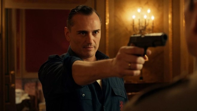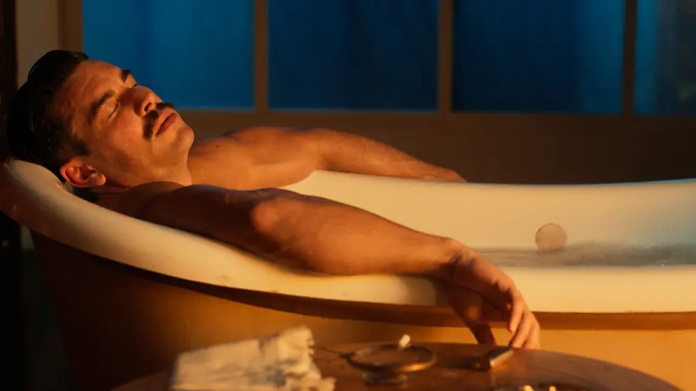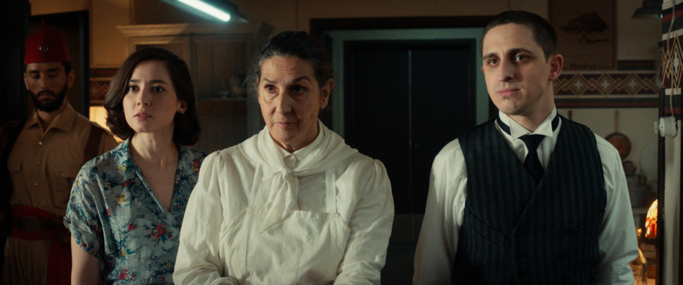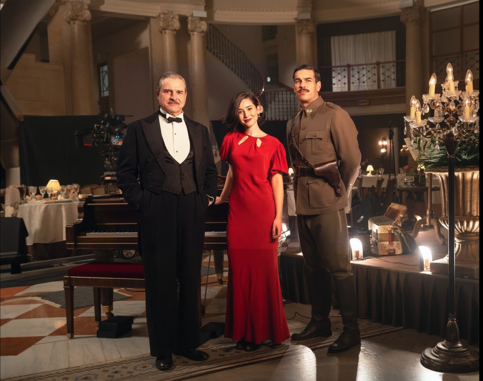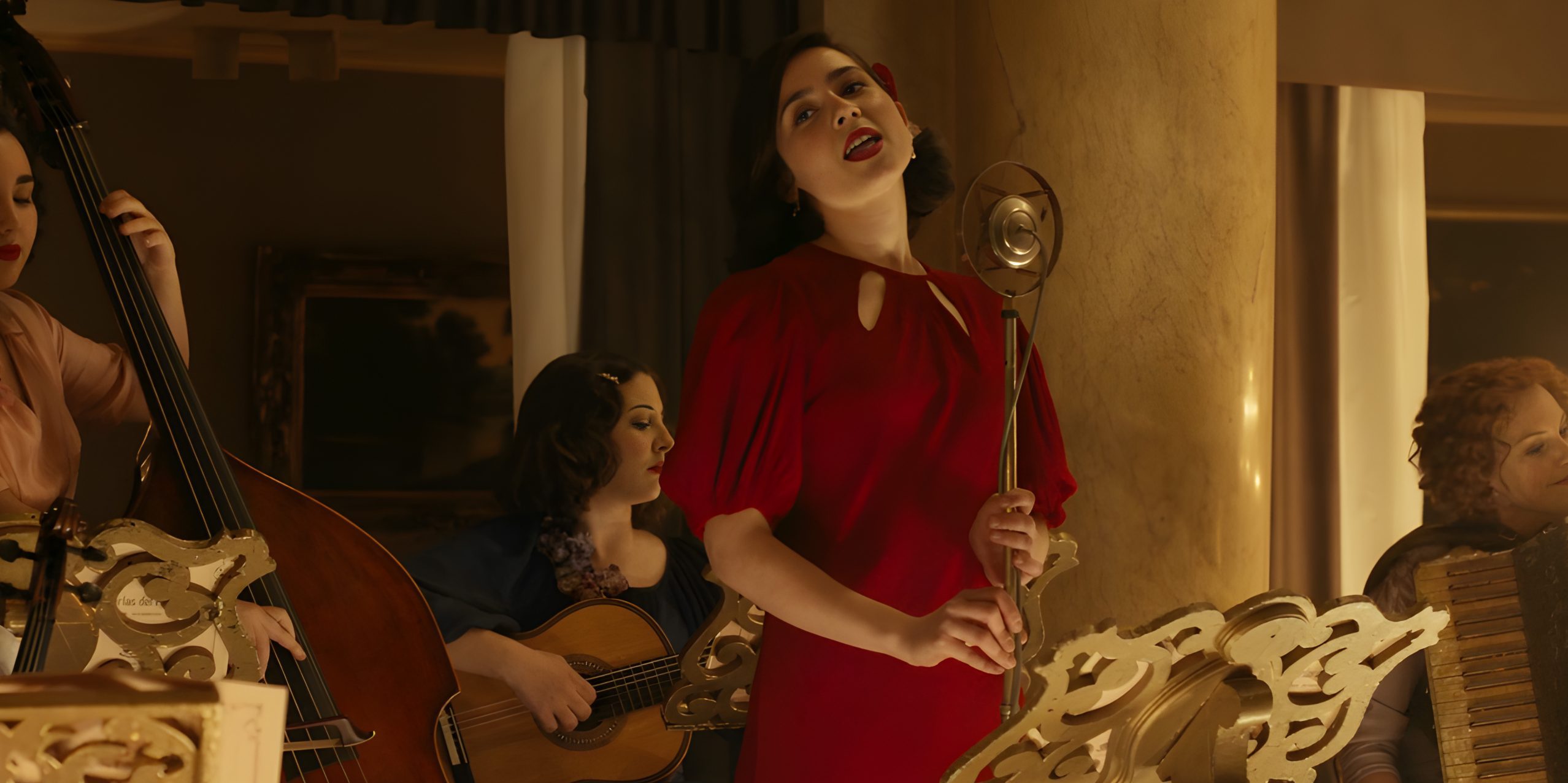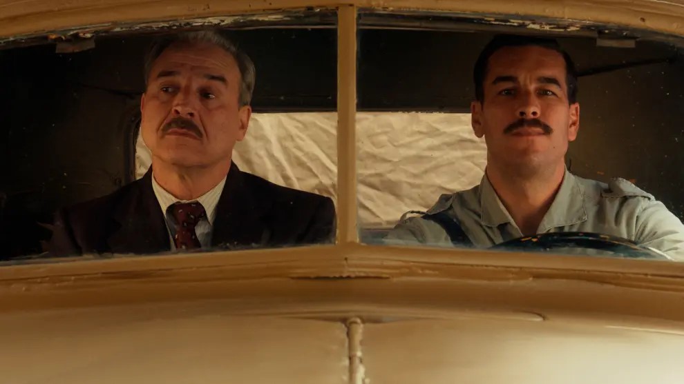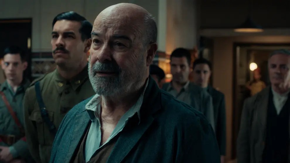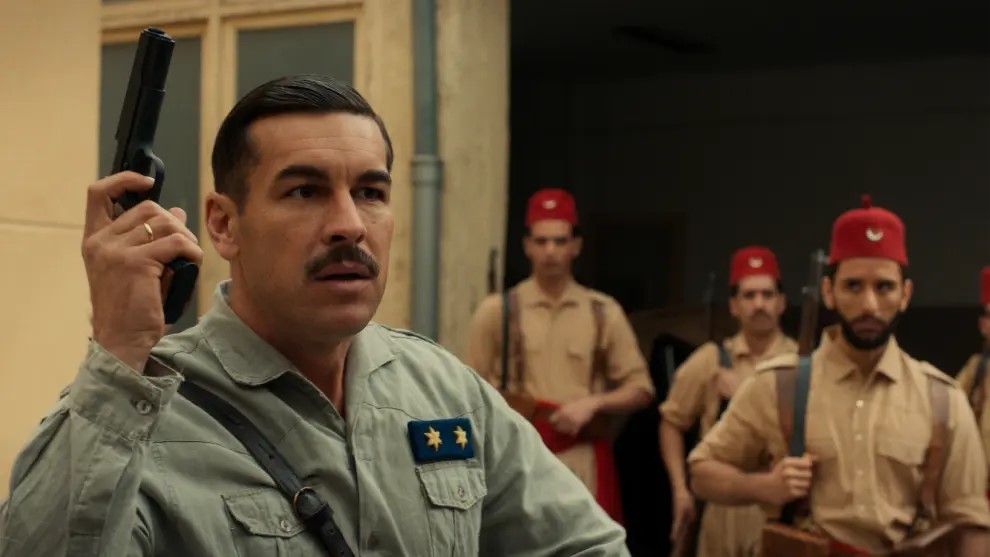 San Juan convierte al maître en un aristócrata de opereta con nervios de acero, mientras Casas explota su propia imagen en una autoparodia que encaja sorprendentemente bien en el caos general. Asier Etxeandía, como antagonista hiperbólico, en el papel de José Luis Alonso Candelas, oficial de La Falange y superior de Medina, aporta a la situación una amenazante brutalidad, que es a la vez ridícula y peligrosa. Es un psicópata que no duda en sacar la pistola y asesinar a cualquiera que le contradiga. El tipo de villano que parece salido de un tebeo pero que funciona precisamente por ese exceso. Alrededor, secundarios que entran y salen como en un vodevil, manteniendo el ritmo de la chanza argumental con distintas tramas: el plan de fuga de los cocineros, la esposa dispuesta a todo con tal de medrar o la futura maternidad de la cantante… mientras se nos muestran las consecuencias de la Guerra Civil, la miseria de la ciudad y las terribles represalias del bando vencedor.