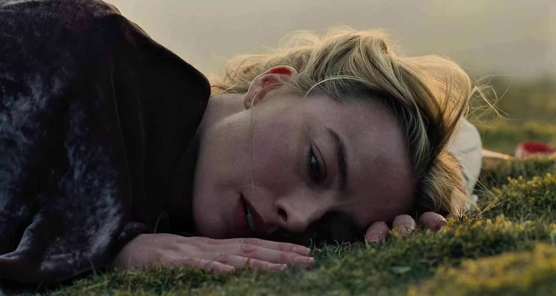 Pese a ciertos detalles —como esas gafas de sol en una escena concreta— que rompen la coherencia temporal, la atmósfera está muy lograda. Los opulentos decorados interiores y los vestidos detallados y suntuosos, así como la fantasía de los maquillajes, más que trasladar al espectador al siglo XIX, cuentan su propia historia y resultan un festín para los ojos. Y los exteriores, ambientada en los parajes de Yorkshire —con la fuerza de su paisaje agreste y su bruma persistente— aportan una dimensión estética que eleva visualmente el conjunto, al igual que la composición de los planos y el tratamiento de la luz que alcanzan momentos de suma belleza. Al punto de que hay escenas que se sostienen por la sola potencia de la imagen, como la escena en la que Cathy encuentra a su padre, el Sr. Earnshaw (Martin Clune), fallecido por su alcoholismo, rodeado de multitud de botellas verdes de gran tamaño apiladas.